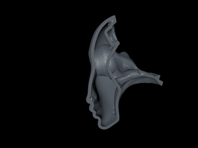 Hollow interior structure designed with a 3 mm wall thickness to balance structural integrity and material efficiency. Internal geometry optimized for eye placement and assembly components.