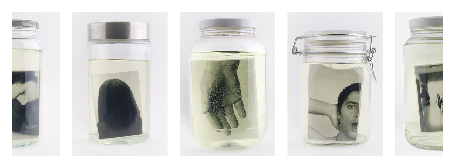 A conceptual photographic series combining multiple images embedded within glass containers. The project explores how fragmented visual elements can form perceived narratives when interpreted by an observer.
