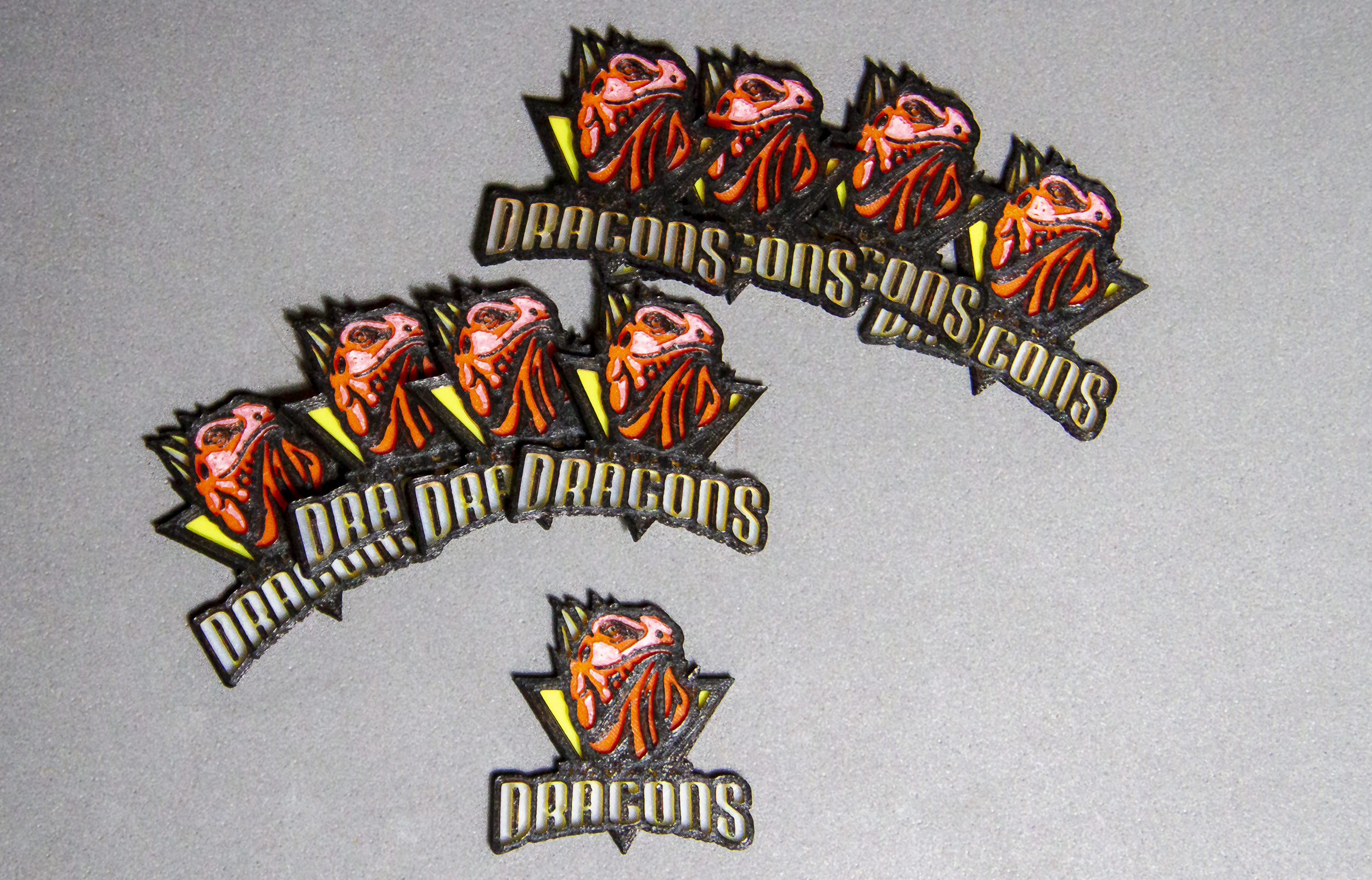 Design compact graphic objects that use controlled layer segmentation to produce multi-color results in single-extrusion FDM printing.