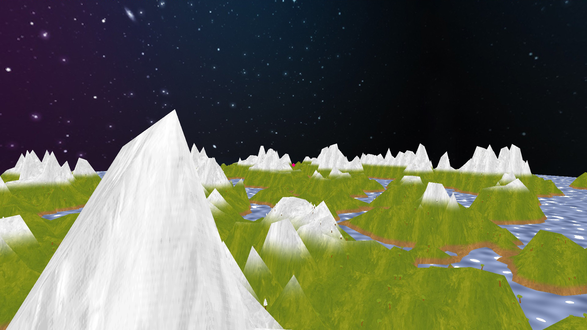 Environmental presets simulate different planetary conditions by modifying terrain coloration, water shaders and lighting behavior. Each biome configuration alters the visual identity of the generated landscape while maintaining the same procedural terrain system.